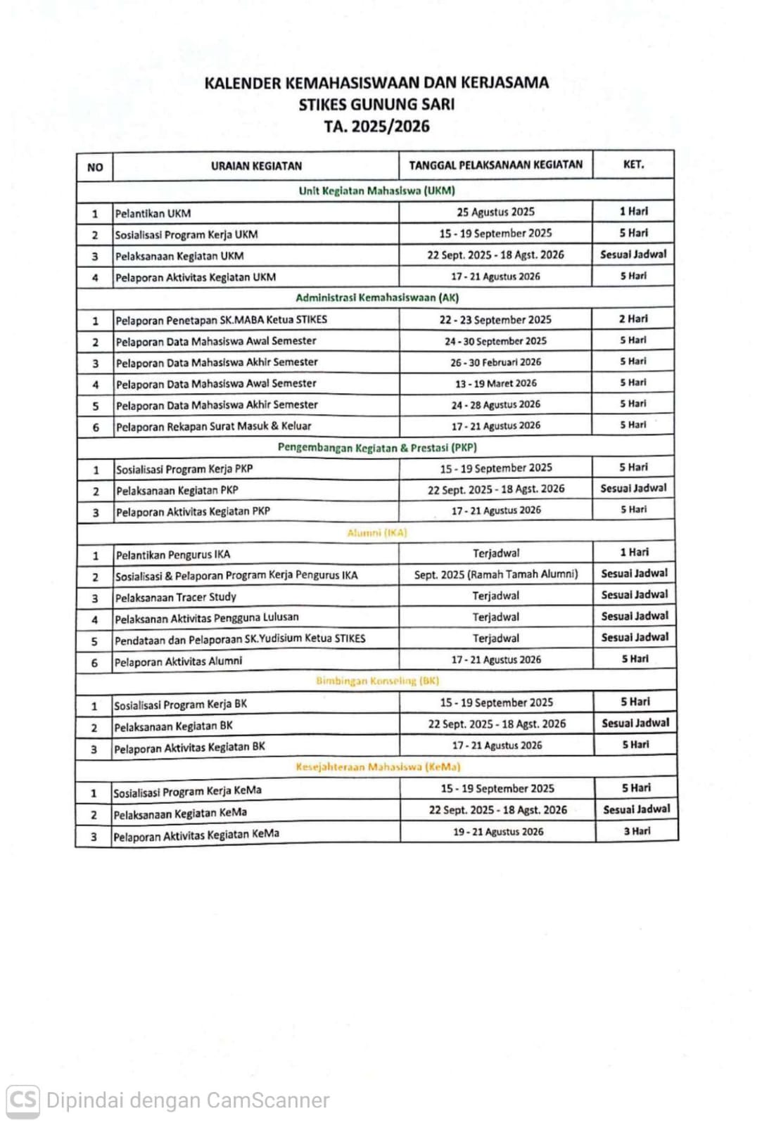 KALENDER KEMAHASISWAAN